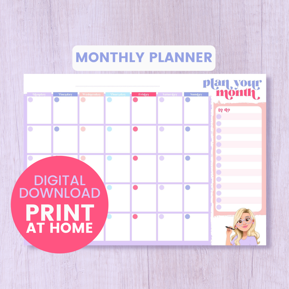 Plan Your Month Planner Digital Download